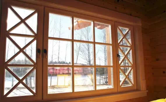 Окна из дерева могут иметь несколько створок с глухим, раздвижным и поворотно-откидным типом открывания. В рамы можно вставить как 1 стекло для холодного остекления, так и одинарный и двойной стеклопакет для тёплых окон.